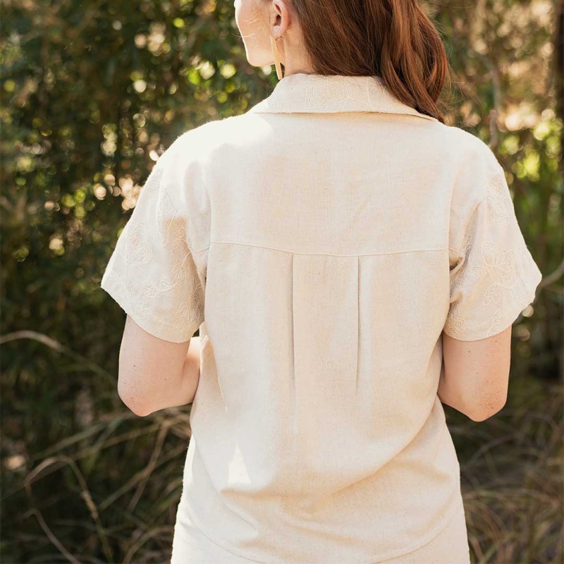Camisa Cropped Lino C/ Bordado