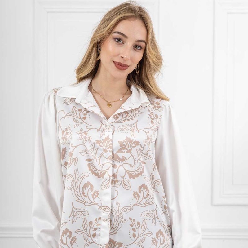 El color blanco de la camisa proporciona una base limpia y fresca, que resalta el sublimado de flores con elegancia, este patrón floral añade un toque de feminidad y estilo, haciendo que la camisa sea adecuada para diversas ocasiones.