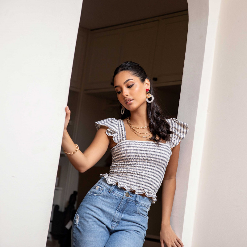 Crop Top Cuadrille Azul Cod.7210373-4 OFERTA