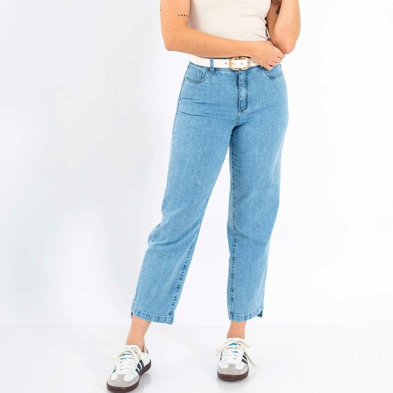 4% Lino: Aporta ligereza y una sensación fresca al tejido. El lino contribuye a la transpirabilidad y da a los jeans una textura ligeramente más crujiente que mejora con el tiempo.