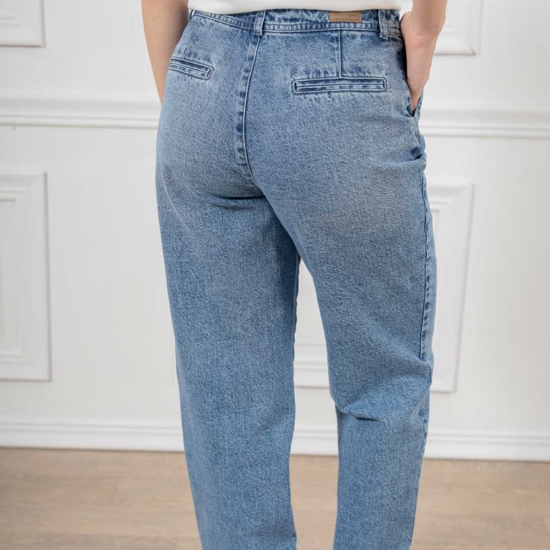 El tono claro del denim evoca una sensación de frescura y verano, ideal para combinar con una variedad de estilos y colores. El color se presta tanto para un look relajado durante el día como para un estilo más pulido cuando se combina con accesorios adecuados.
