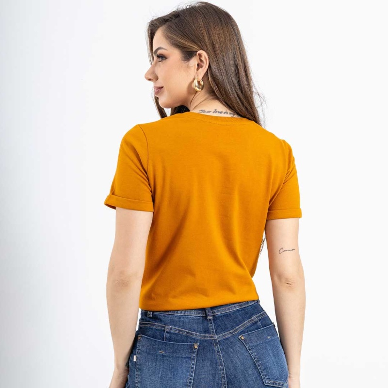 El tono mostaza de esta remera no solo añade una chispa de color a tu atuendo, sino que también complementa una amplia gama de tonos de piel, iluminando tu look de manera sutil pero efectiva.