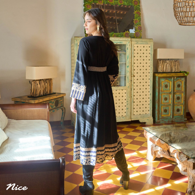 Vestido Midi Con Mangas bordadas